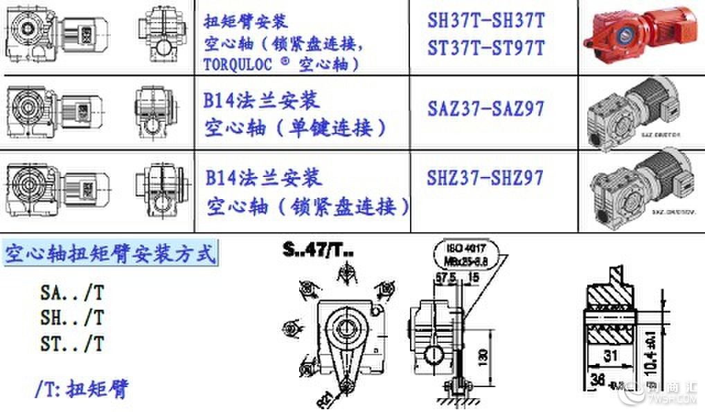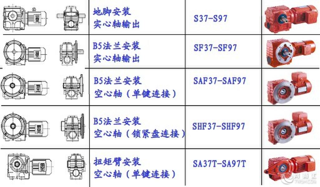 S系列斜齿轮蜗轮减速箱:S/SA/SAF/SF: S37/S47/S57/S67/S77/S87/S97