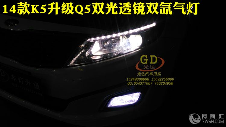 深圳车灯改装大灯 14款起亚K5改装Q5双光透镜氙气灯 提高看路效果