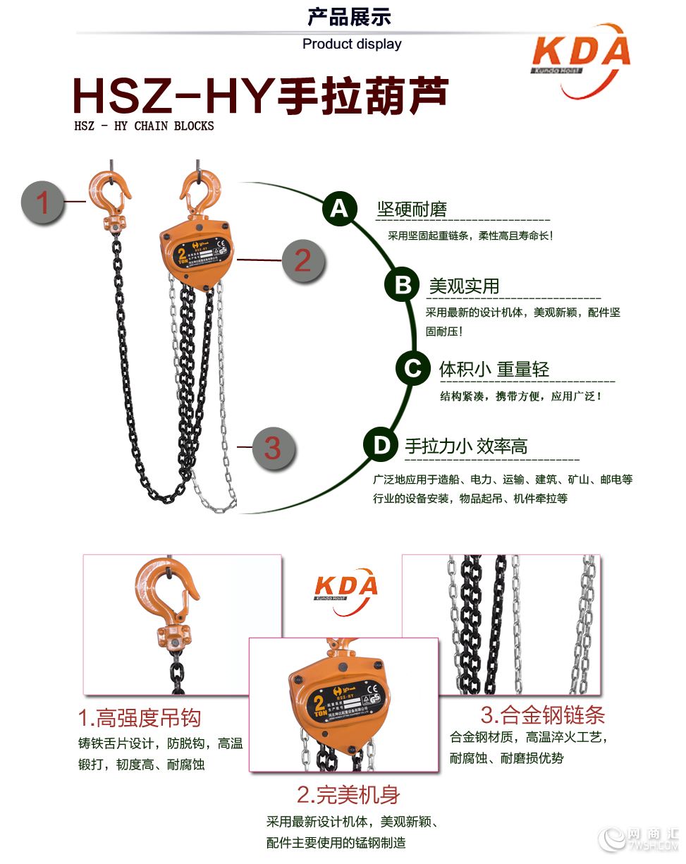 锐贝手拉葫芦采购网,整合各类手拉葫芦的产品信息、销售信息、求购信息,锐贝集商品选购、下单、网上支付、物流配送、售后服务为一体,致力于为广大手拉葫芦生产商,经销商,客户,搭建一座零距离沟通的信息桥梁。 手拉葫芦www.shoulahulu.com/因其轻巧方便,不仅仅只用于起重行业,在日常生活中也会经常用到手拉葫芦,比如在搬运或起吊日常货物的时候也可以用到手拉葫芦,但是怎样使用才能大程度降低货物损伤呢? 要想降低货物损伤,就得非常了解葫芦的使用方法,首先要了解被搬运重物的体积重量来选择合适规格的此设备,否则货物过重将导致链条断裂,其次,确定货物重心,然后捆绑好货物,在拽动手拉链条时用力均匀平稳;要控制起吊的高度,一般情况手拉葫芦起升高度为3m,不可乱用。