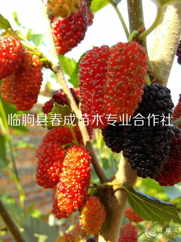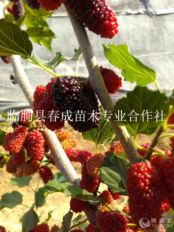 果桑苗——大果紫椹、黑桑(亩产万斤)、长果桑、白桑葚 鲜果被称为第三代水果新秀,加工品被誉为二十一世纪佳天然绿色保健食品 果桑是近年来大力发展的新型果树品种,桑果兼用型既可以养蚕、又可以摘果,桑枝还可以种植食用菌,而且栽培技术简单实用,各种土壤都能栽培,桑葚既是食品又是药品,营养丰富,酸甜可口,具有生津止渴,强身等多种功效。桑葚能加工成饮料、果冻、果酱、桑葚干、桑葚酒、桑葚膏、桑葚醋等特色产品。采用发酵酿造技术生产的高品质桑葚系列红酒,大限度的利用和保护了桑果中的营养成分。 果桑市场发展前景广阔,我国大部分地区都可种植。该品种树形开张,枝条细长,花果极多,果实较大,圆筒形,大果重16克。果实成熟后由紫红色到紫黑色,果面光泽性强,颜色鲜艳,光亮美观,象黑珍珠一样。速冻果和加工品市场出口前景广阔。该树种适应性广,抗性强、生长快,结果早,效益好,果实美观,采摘期长,是当前建设生态采摘园的品种,也是山区丘陵地区有发展前景的致富项目之一。 果桑春季每亩高可以种植500株,利用大棚栽培可以提前到春节前后采收,其效益是露地栽培的15-20倍,所以紫椹种植是当前的农业结构调整的见效快、效益高、即可卖果又可以养蚕的有发展前景的农业特色产业。 果桑采摘: 每年5月初至6月初,是春蚕的饲养时间,也是桑葚缀满枝头的季节。果桑是以产桑葚为主的。果桑基地顺势推出了桑葚采摘游,引得不少市民拖家带口前去,在采摘过程中重温儿时乐趣。 5月的阳光有些火辣辣了,但桑园里却很荫凉,紫色、红色的桑葚挂满枝头,远远看去彷佛一幅色彩缤纷的画。桑葚个头比普通桑树结出的果实大出一倍,有如吃足食的蚕宝宝,近百亩的果桑基地,这么大的产量,一点也不愁销路,除了让顾客自由采摘,剩下的就做桑葚酒或冰冻起来卖给饮料企业。加工的桑葚酒,清澈棕黄的色泽,浓郁的酒香很难让人联想到这是桑葚的衍生物。 不过现在是吃鲜桑葚的佳时间,采摘的桑葚带回家,放在冰箱的速冻柜里,想吃就拿出来,像吃冰淇淋,味道很不错呢。可以做成桑葚甜汤,把黑豆、红枣、桑葚用文火煮上半小时,吃时再加上蜂蜜,有营养又美容。也可以制作桑葚馒头,把桑葚汁揉进面粉中,做成馒头,又好看又好吃。“这样就能把采摘回去的桑葚充分利用起来了。” 临朐县春成苗木专业合作社其他果树苗:晚熟桃树苗|黑桃树苗|血桃树苗|紫桃树苗|黄桃树苗|白桃树苗|西梅树苗||钙果苗|猕猴桃苗|葡萄苗|梨树苗 种植技术:0536-8920257 15165369051(手机、微信号)