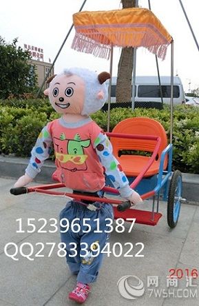 黄南机器人拉车,海南新型机器人黄包车厂家批发价格便宜 机器人手拉车是一种可供人乘坐的可行走的儿童游乐设备。给机器人穿上漂亮的衣裳,并用蓄电池作能源,对机器人充一次电可连续行走3个小时左右;机器人像人一样迈步行走。根据型号不同,载重在60公斤以下。机器人拉车的行走安放一种电动机械装置作为行走装置,采用两套不规则四边形曲柄连杆机构,由电动驱动曲轴带动曲柄连杆机构作交替运动,模拟人走路。而机器人的转向机构则采用方向盘通过钢丝绳来操纵行走机器的转向,由于方向盘是通过转动方式来控制车的方向,操作十分方便,设计更加合理。适合公园,广场,景区,游乐场,商场,超市等场所经营。机器人拉车实际上是旧时人力黄包车的化身,给现今年轻人一个体验玩乐的机会。 1.长定时1-30分钟; 2.音乐盒播放流行音乐,个性化十足; 3.闪光灯红蓝交替,吸引人气; 4.急停开关装在扶手旁边,使用特别方便; 5.额定电压12V额定功率150W,承重60公斤以下。