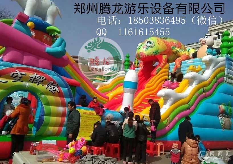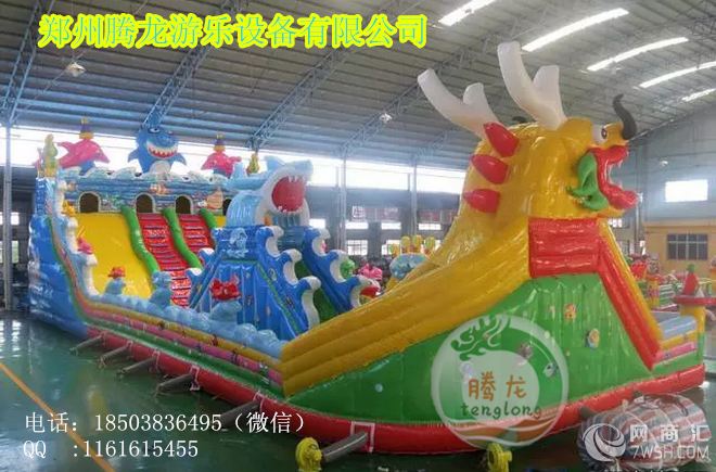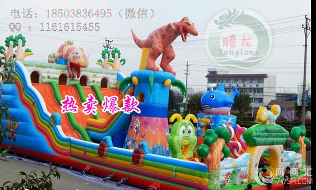 充气城堡采用专业的原材料供应商,0.48mm一等加厚,环保型PVC材料。专业的设计人员生产工艺:下料,缝纫(热合),粘整(美化),成品。尽可能多的使用双明线缝制,线迹均匀,针距控制在4.2到4.5mm之间。(能够大限度的减少漏气和增加缝纫部位的垃圾强度。)粘整刷胶宽度与粘条的宽度误差不超过正负12.5px。造型与大面连接处大限度地采用弧线结构。目的是使产品的受力均匀,增加产品的使用寿命。每两个造型之间和造型与护栏之间都有一定的安全距离。(1米)产品造型逼真,颜色搭配美观。而且能够充分保证游玩者的安全。 售后服务:终身提供维修用的胶水和角料,我公司售后服务人员将及时为您解决疑难问题,收到客户信息后,即时给予客户一个处理意见或技术指导不能即时处理的,将在24小时内与客户联系并根据实际情况提出处理意见。可使用八至十万人次左右。配送相应风机,胶水和修补材料。良好的品质,优质的服务,专业的技术,是我厂给每一位客户的郑重承诺。让您投资零风险!