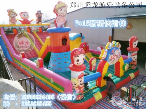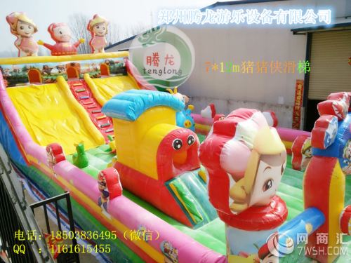 腾龙游乐设备有限公司根据海洋霸主鲨鱼的形象研发了一款比较新颖的充气滑梯款式-----鲨鱼充气滑梯。研发的这款鲨鱼充气滑梯里少了一些鲨鱼的凶猛,多了一些鲨鱼的憨厚和可爱,他们圆鼓鼓的身体,看起来萌萌哒,小孩子更喜欢接近他们,更加了解他们。 腾龙游乐鲨鱼充气滑梯采用一等环保夹网pvc为产品原材料进行产品生产,此材料为专业的充气布,耐寒性能好,可达到零下40度低温;阻燃性能好,离明火5秒钟内自熄,通过技术监督局检测结果显示,无毒、无味、无刺激性,对皮肤不会引起过敏反应,尤其是小孩子。 结合多年的市场调查及市场需求,产品设计上形成了我公司的独特风格。外观设计上:大气,颜色搭配合理,符合小朋友的审美视角;造型逼真生动,布局合理,有效地增加了游玩人数容量及游玩的趣味性;内部结构符合流体力学原理:气压足,点、面受力均匀。 选产品款式比较重要,选一个诚信的厂家去做这件产品也是很重要的,想要订做新款充气滑梯腾龙 我们的追求:用全面的创新为客户赢得市场,用优良的品质保证客户的利益, 猪猪侠充气滑梯 猪猪侠儿童充气城堡是为了迎合市场需求和消费群兴趣,我厂近新推出的款式。 2009年,猪猪侠荣获由国家广电总局、中国动画学会颁发的动漫行业高奖——“具产业价值动画”奖,同时还入选国家广电总局推出的“中国十大卡通形象”。此外,猪猪侠还与包括加拿大、俄罗斯等34家国外播出机构深度合作,成功打入海外市场。 设计理念 以国外为流行的猪猪侠造型为设计理念,打破常规城堡设计的束缚,使猪猪侠和玩具城堡能够得到更好的结合和统一,给人以崭新悦目的感觉,再配以森林元素,给人营造出一只小猪活跃开心的场景,使小朋友们在游玩的同时也提高了认知能力。宏伟的造型,艳丽的色彩,城堡与滑梯的结合给孩子们增添了无限的游玩乐趣。 产品特点 该款猪猪侠充气滑梯制作过程采用了下料、缝纫、热合、粘整等工艺,猪猪侠造型异常逼真,栩栩如生,能够强烈吸引着孩子们前去玩耍。这款城堡玩法丰富,可以滑、蹦、钻、跳等,娱乐无穷。整个城堡看起来动漫,大气。此次新款的猪猪侠充气城堡,设计新颖,色彩鲜艳,造型可爱,深受广大小朋友的喜爱。 品 名:充气城堡 品 牌:郑州腾龙游乐设备 产品造型:猪猪侠充气城堡(面积可自选,设计师量身设计) 经营场地:广场、游乐园、公园、集市、商场等 场地条件:较平坦、无尖利物 设备配置:风机750W——1100W,220V,胶水,修补材料 材料参数:厚度0.45-0.55mm 材料性能:采用进口技术生产,光滑彩色面料制作,耐寒(可达零下40度)耐晒(60度)。 使用年限:100000人次 人员配置:每件1-2人 适龄儿童:3岁-16岁 产品质量:20-65kg; 充气时间:3-5分钟 停机排净空气时间:10-15分钟 折叠所需时间: 5-10分钟 售后服务: 1、 三年内免费提供维修用的胶水和维修材料 2、凡购买我公司充气类产品的客户,将给予终身的技术支持 3、腾龙游乐及时为你解答疑难技术问题 大型充气玩具相关知识材 料: 加网PVC布料,由质量监督局检测结果显示此材料对皮肤无刺激性,无毒性对儿童完全没有伤害。此材料为一种专业的充气布,耐寒性好,可达零下40度低温;阻燃性好。 相关配件:配送相应风机,胶水和修补材料。 2、 使用寿命:可使用八至十万人次左右。 产品保证与售后 1.质检:生产中的每一个环节都有专门的质检人员按照国家质量监督局有关规定严格把关,不合格的产品不会流入市场。 2. 售后:我公司承诺,对所售出的充气玩具3年内免费提供维修用的胶水、角料;售后部对您定期回访,指导经营。 3、 注意事项 1.如遇到刮风下雨等天气,应提前做好防风准备,以免发生意外事故。2. 如果充气城堡长期不进行使用,应注意清洁好之后把城堡进行折叠,捆扎,打包好。仓储温度应该