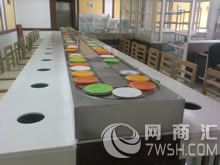 河南自助小火锅设备 河南回转火锅设备,不需要设大厨房,整个配制、加工过程,都由顾客在餐桌上自己完成,节省空间是其一优点; 不需要大型灶台和灶具,无需大厨,普通服务员无需培训就能操作,简单易操作是其优点之二; 回转火锅是一人一锅,即可根据顾客喜爱选择各色菜品又符合个人卫生习惯,绿色饮食回归自然是其优点之三;独特新颖的回转火锅设备工艺,配用现代高科技电磁炉具,没有明火,不存在安全隐患,没有丝毫油烟产生,环保卫生是其优点之四。回转火锅设备均由以下部分构成:台架系统、动力系统、输送链系统 、轨道系统。 我司的回转输送设备采用进口电器元件、链片及导轨均采用304不锈钢材质,配合不锈钢镜面板或不锈钢拉丝面板,外观整洁、美观。