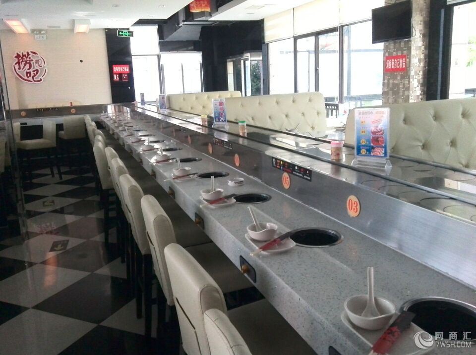 唐山回转小火锅设备价格 唐山旋转火锅设备可根据店面的布局和客户的要求设计任何形状。店面空间使用率增大30%以上。旋转火锅设备由一支具有一流回转输送设备生产团队制作,交货迅速,工艺精美,免费上门安装,三年保修,终身售后服务。主要材质:采用完全符合国家餐饮器具卫生标准材质-304不锈钢、表面光亮、易于清洗、永不锈蚀。电机全部采用台湾产进口减速机,噪音小,经久耐用。 唐山回转小火锅设备价格 唐山旋转火锅设备特点:1、整机性能稳定、安全、无噪音、易操作2、输送链带运转平稳,机械维护可自己随时进行,使用寿命长3、输送导轨接驳位平整、无接缝外形美观。 4、设计制作合理,链条经久耐用,其他易损部件更换简单,可自己操作5、链片垫条采用高分子尼龙制造,具有耐磨、无噪音等、长寿命等特点。