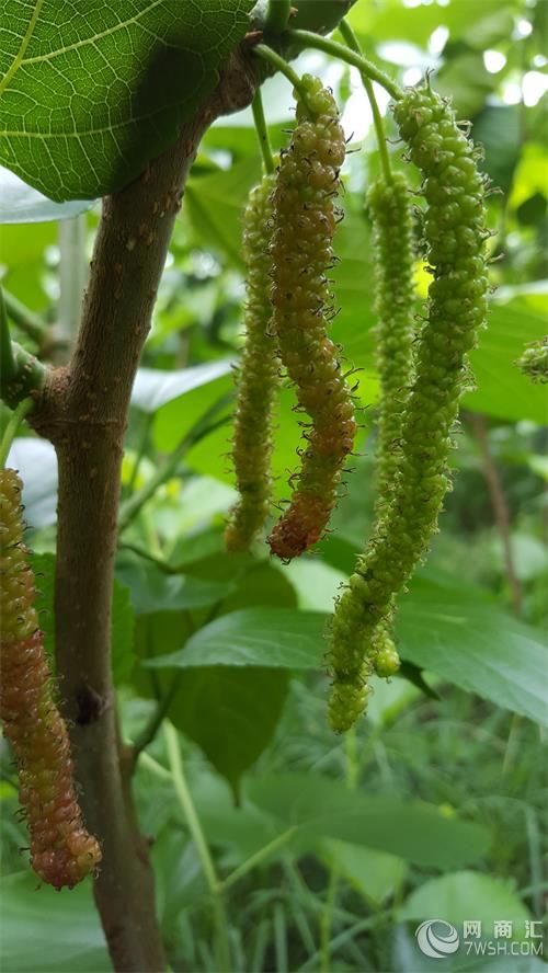果桑苗,紫椹果桑苗,甜果桑苗,长果桑苗,台湾果桑苗,白桑果桑苗 椹莓_紫椹,该品种树形开张,枝条细长,花果极多,果实较大,圆筒形,大果重16克。果实成熟后由红色到黑紫色,果面光泽性强,颜色鲜艳,光亮美观,象黑珍珠一样。口感甘甜爽口。叶片可以用来养蚕,还可以用来炒茶,制作桑叶面条,桑叶馒头,果实可加工成桑果干、果汁、酒、茶,还可以加入烘焙食品中,应用广泛,速冻桑葚和桑葚加工品出口前景非常看好。该树种适应性广,抗性强、生长快,结果早,效益好,果实美观,采摘期长,是生态旅游采摘园的品种,也是有发展前景保健水果之一。 果桑种植技术 首先选用优良的果桑苗品种,好的果桑苗品种高产,口感好,耐寒性好,选择无污染、土层深,一定能浇水的地块,桑葚膨果期,有水源可以更好的丰产。桑葚种植前将田地深耕,行距1米,深和宽都是40厘米开沟施肥,以豆饼、发酵的猪牛羊粪等有机肥为主。为了便于采摘桑果,留成小树形,一亩种植500棵左右,丰产期,每棵果桑树留8-12根结果枝条,每年6月15号果实结束后修剪,每年修剪二分之一的枝条。一般三年养成树形,如果果桑树之间有套种作物的,种植密度小些。每年冬天和春天发芽以前,各喷洒一遍石硫合剂。冬天使用有机肥,在桑椹膨果期,使用生物酵母肥冲施。桑椹变成紫黑色,果柄由绿变黄了,代表桑椹成熟了,发红的时候还没有成熟,是不能吃的。 品种选择;采摘园,市场销售选择鲜食桑椹为主,口感甜,高产的果桑品种。加工桑果汁选择高产、酸甜适口、出汁率高的果桑苗品种。 果桑定干:低干桑离地面30厘米左右定干,高干桑在80到1米左右定干。高产的、果桑枝条直立的品种采用无干桑种植方法,没有主干,直接从地面几公分选留3个芽,种植当年养成三根枝条,中途可以把三根枝条开张一下,不要挤到一起。第二年春天没有发芽的时候,把三根枝条短截三分之一,果实采摘结束后,在6月15号以前,把三根枝条剪短,只留下15厘米,每根短截后的枝条再选留3根枝条,其他的芽抹掉,到了秋天第二层形成6根枝条,第三年春天发芽以前,把第二层的六根枝条都短截三分之一,果实采摘结束后,把第二层的六根枝条都短截,只留下15公分,每一根再留3根枝条,到了秋天第三层形成12根枝条,这样树形就养成了。以后,每年桑果采摘结束后,剪掉一半的枝条,基部留下几公分,便于生长新的6根枝条,这样,每年春天结果的时候,6根老枝条和6根新枝条结果。 临朐县春成苗木专业合作社出售果桑苗,长果桑苗,黑桃树苗,西梅树苗,无籽葡萄苗等果树苗 种植技术:0536-8920257 15165369051(手机,微信号)