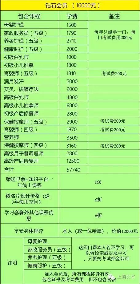 给你一万元你能学习几门课? 一门高级小儿推拿要6800元, 一门高级产后修复课程就要12500元! 但是,加入我们10000元的钻石会员你能学到多少门课?! 加入我们的钻石会员,你不仅能学高级产后修复成为以后月入过万的产后修复师!你还可以学习以下所有高级课程! 推拿学是中医学的重要学科,与中药、针灸并列为中医的三大形式。 在明朝即已形成完整理论体系的小儿推拿更是中医留给后人的宝贵遗产。在中医学理论中,推拿完整的理论就是小儿推拿。由于小儿各项机能发育都很不完善,免疫功能也很差,所以比较容易患病。小儿推拿疗法适应症广泛,大部分儿科病症都可应用,尤其是小儿常见病,如感冒、发烧、咳嗽、腹泻、便秘、复感、厌食、遗尿等,小儿推拿是的治疗方法。从古至今,小儿推拿对儿童的健康成长都起到了很好的防病、治病的作用。 小儿推拿是绿色疗法,不必打针吃药,没有毒、副作用,安全、有效,也不需要医疗器械,手法简单易学,非常适宜在儿童家长中普及推广。抚触在中国已经为很多家长所知,与抚触相比,小儿推拿增加了经络和穴位,效果更好、适用范围更广,对儿童的健康和生长发育有更好的保健和治疗效果。 1.小儿生长发育的特点(生理特点、病理特点);小儿辩证方法;小儿推拿的流派和特点。 二. 招生对象: 1.计划开展小儿推拿上门服务、小儿推拿家长培训、小儿推拿实体店服务的人士。 三. 课程费用:6800元 四. 开课时间:10月4日——10月18日 五. 报名时请携带个人身份证、二寸蓝底照片3张 联系地址:上海浦东沪南路818号2楼 电话:021-50280550 50807233 加入我们的会员吧 让你用优惠的价格 学习到精品的课程 学习是不断充实自己的过程,欢迎大家踊跃报名!一. 主讲内容: