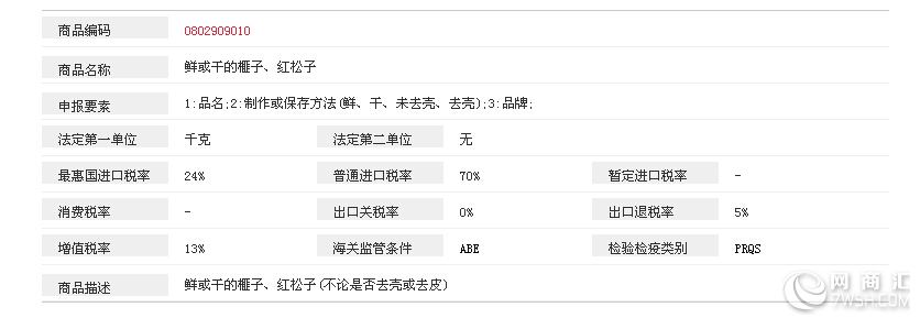 | 品牌 | 松子进口流程 |