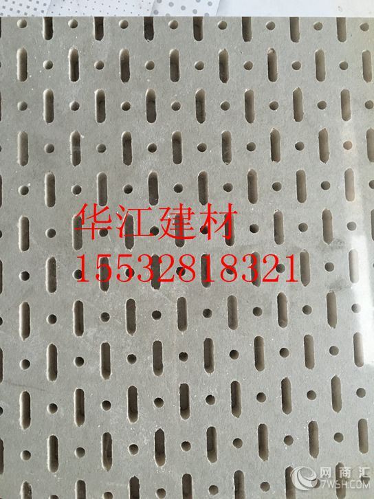 供应穿孔石膏板价格产品简介 石膏板冲孔上的圆孔与方孔,只是造型(样式)上的不同,它与交替石膏板一样,除了需要符合声学要求,又要追求装饰效果;所谓交替石膏板,通俗的说,就是不同孔径的孔,依据一定的排列顺序交错排列,形成一个具有装饰效果的(冲孔)造型。这种造型,是根据美观(装饰效果)的需要而制作的。 可冲制图样或孔径多样,达到石膏板、硅酸钙板、密度板、铝天花、水泥板、玻镁板,吸音板、矿棉板、防风板在装饰使用时的美观、隔音等效果。亦可以按客户图纸或样板及设计师要求特制作。常制圆孔径:φ1.8孔—φ35孔,,常制花型: 太阳花、直排孔、全孔、菱形花、四角扇形花、中间圆形花孔,异形孔,蜂窝孔。 硅酸钙板冲孔模具石膏板冲孔设备,冲孔模具常制圆孔径:φ6mm孔、φ8mm孔、φ10mm孔、φ15mm孔、φ20mm孔、,φ2.3孔、φ2.5孔、φ3.0孔、φ6.孔φ1.8孔、φ2.0孔、φ2.3孔、φ2.5孔、φ3.0孔、φ6.孔,常制花型:石膏板圆孔冲孔模具,石膏板方孔冲孔模具,石膏板大小孔冲孔模具,石膏板长圆孔冲孔模具,六角孔穿孔模具,太阳花、直排孔、全孔、菱形花、四角扇形花、中间圆形花孔,异形孔,蜂窝孔。华江建材:155-3281-8321,任经理。 穿孔石膏板,穿孔硅酸钙板,穿孔水泥板,消音穿孔板,穿孔筛网板,穿孔吸音板代加工,穿孔筛网板代加工圆孔石膏板具有极好的吸音效果与装饰效果。采用特殊配方纸面石膏板作为加工基板进行冲压打孔加工而成。因其美观多样的花色品种、独特连续无缝穿孔效果(装饰效果完全不同于市面上多见的600?600明架穿孔天花板)独特的净化空气的功能在欧洲被广泛使用。
