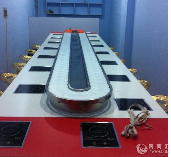 荆门创业理想的自助回转火锅设备 自助旋转火锅设备优惠促销 自助旋转小火锅 回转火锅设备价格链板及链条均采用304磨沙面冲压而成,板厚1.8mm,宽度140mm,链条节距100mm, 链条下部分导轨面板采用304锈钢镜面,板厚度为1.2mm,内部采用白色防摩尼龙垫条,旋转吧台, 寿司料理,旋转火锅,自助火锅餐厅。下架采30mm*30mm*1.5的碳钢方管焊接而成,表面经过防锈处理, 所有连接部分均采用标准件连接,便于移装。 自助回转小火锅,适应了饮食界推陈出新,适应了现代人对饮食新奇的追求。 自助回转小火锅是你从事餐饮火锅行业,日本料理,韩国料理必备前卫机械设备. 荆门创业理想的自助回转火锅设备 自助旋转火锅设备优惠促销