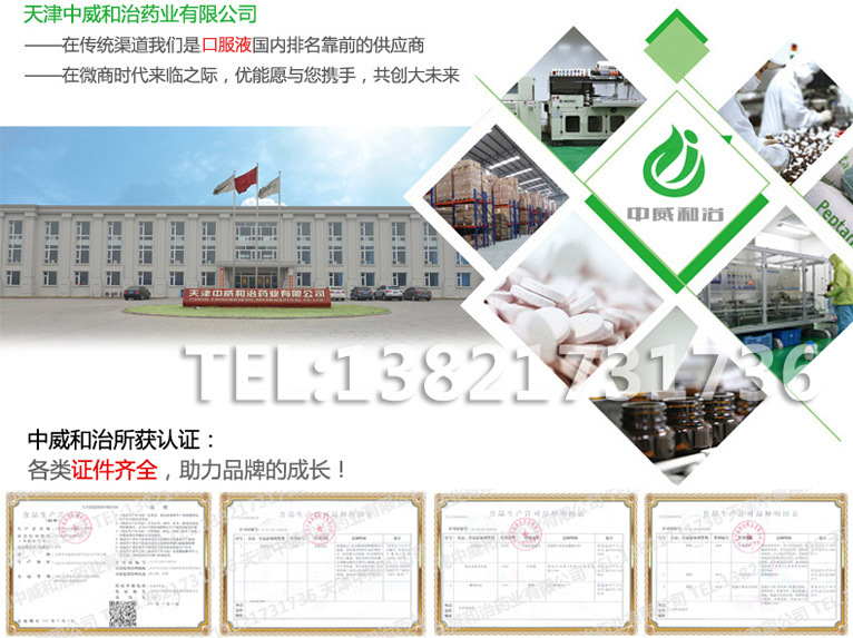 天津专业小规格燕窝饮品加工厂、燕窝蛋白肽口服液OEM定制贴牌 (专业50-100ml口服饮品生产线制造厂家) 天津中威和治OEM/ODM实力商家,满足您口服液贴牌加工多种配方!为客户提供全方位的方案决策! 来厂考察、洽谈:138-2173-1736 唐经理 产品代工参数详情 燕窝饮品/燕窝胶原蛋白口服液/玫瑰燕窝饮料 生产许可证:SC12712011500236 包装规格(推荐):50ML?8支/盒、100ML?4支/盒 配方:1、工厂提供成熟配方;2、客户自带配方生;3、按客户要求调配定制 起订量/单价:面议、电议 生产商:天津中威和治药业有限公司 阿里巴巴官网:https://shop1488591847381.1688.com 联系人:唐悦(经理) 手机:13821731736(微信同号) 代工要求:客户必须拥有合法注册商标、营业执照及食品流通许可证,不承接个人业务! 优势:专业的技术研发团队/提供生产资质和成熟配方/国家食品资质证件齐全 产品网址:https://detail.1688.com/offer/555315113973.html 合作模式多元化 COOPERATION MODE DIVERSIFICATION 一、ODM加工 天津中威和治药业有限公司 每个环节都做到标准,只为健康出品! 天津中威和治药业有限公司创建2011年,是天津和治药业有限公司的分厂,该厂注册资本3100万元,固定资产2.6亿元。公司已取得自主进出口权,承揽保健食品、出口食品的代加工业务,合作伙伴已有三十余家。 (天津专业小规格燕窝饮品加工厂、燕窝蛋白肽口服液OEM定制贴牌) 产品按照严谨的工艺流程和现代化检测方法进行生产和检验,产品质量稳定可靠。 面对新的机遇和挑战,我们正以强大的凝聚力和创造力,以齐全的品种、优良的质量、超低的价格、完善的售后、良好的信誉期待您的加盟!让我们为了您的健康事业携手并进、共创辉煌! 我们的优势 OUR ADVANTAGES 全方位满足您的定制需求 功效/口感/配方/均可定制 联系我们-Contact us 联系人:唐悦(经理) 手 机:138-2173-1736 E-mail:tj-zwhz@foxmail.com 主 页:http://zwhz.b2b.7wsh.com 地 址:天津市宝坻区经济开发区宝中道北侧,眼见为实,欢迎来厂考察、合作! 天津专业小规格燕窝饮品加工厂、燕窝蛋白肽口服液OEM定制贴牌