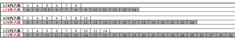 标准套筒规格表: