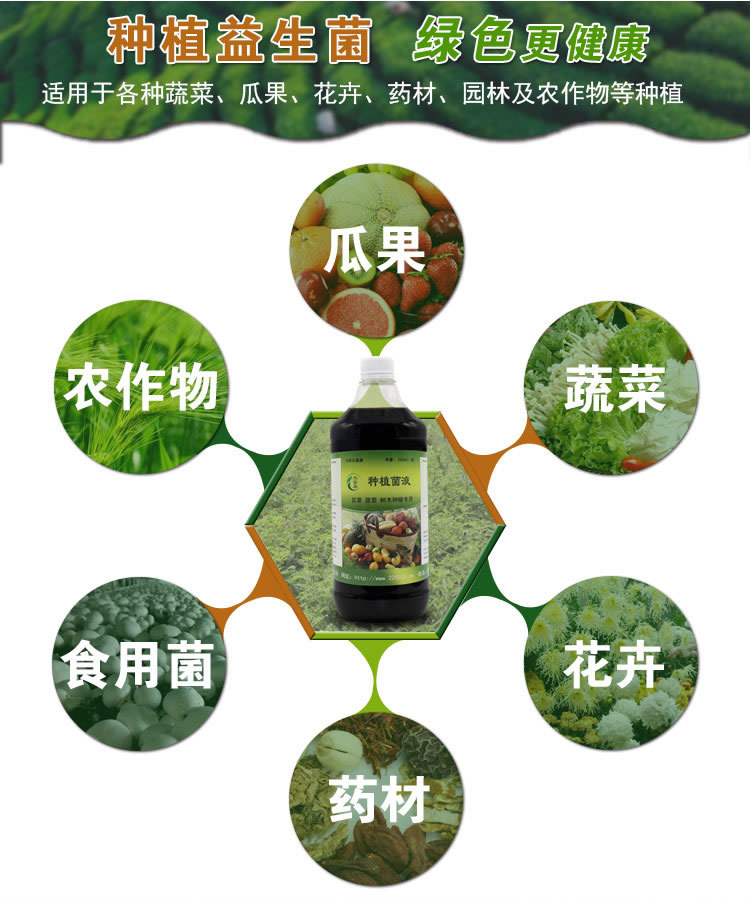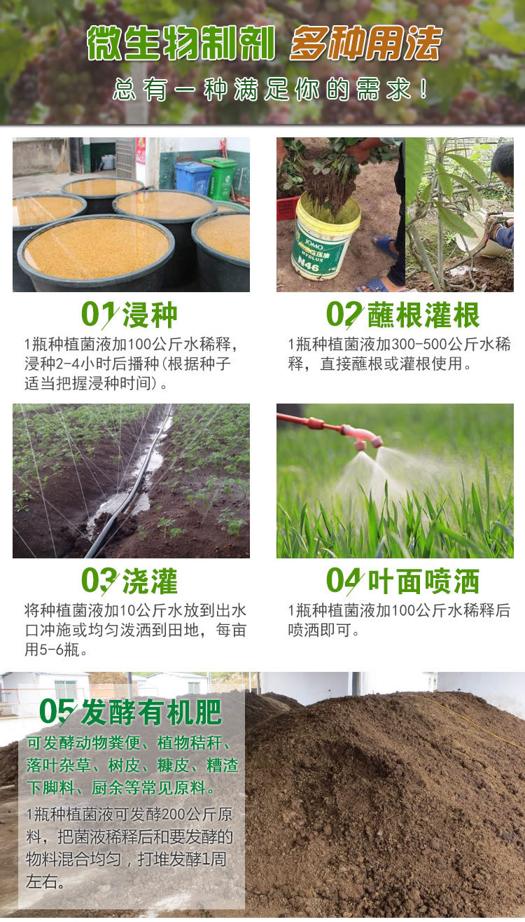 1瓶种植菌液兑200公斤水,在移栽时蘸根使用