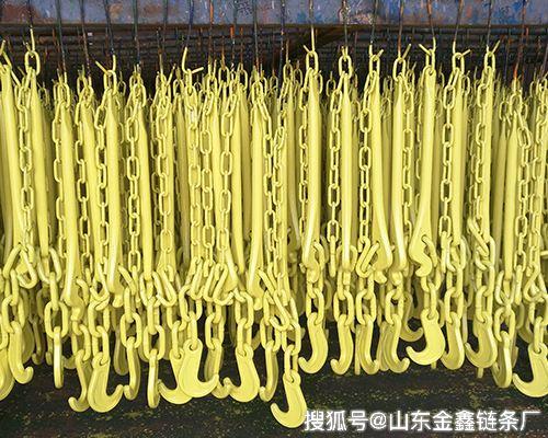 捆扎链和捆绑链都是用于集装箱及车辆和其他货物在海运过程中的绑扎链条,捆扎链和捆绑链中的G80级13mm捆绑链条,破断20T,表面喷漆处理光滑美观,同时可根据要求配有捆扎杆/横旦钩及C型钩等系列配套产品。山东金鑫链条厂捆扎链捆绑链规格6mm、8mm、10mm、12毫米、18毫米、20mm、22mm、30mm等。 捆扎链捆绑链材质采用高强度合金钢表面处理:抛光、发黑、涂塑、镀锌和浸漆(油漆颜色可由客户指定)。船用绑扎链条松紧器常用规格:13mm 11mm,9mm绑扎链条,小破断拉力分别为20吨,15吨,10吨。 捆扎链捆绑链广泛应用于港口、电力、钢铁、造船、石油化工、矿山、铁路、建筑、冶金化工、汽车制造、塑料机械、工业控制、公路、大件运输、管道辅设、边坡隧道、井道治理防护、海上救助、海洋工程、机场建设、桥梁、航空、航天、场馆等重要行业以及基础建设工程的机械设备。