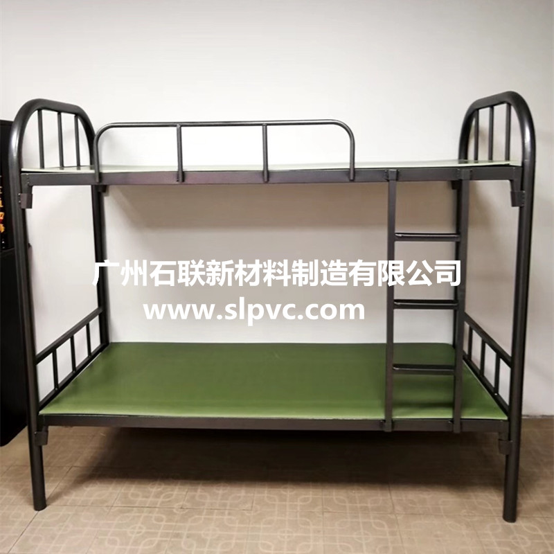 双层铁架床PVC床板防水、防潮,根本解决了木质产品对潮湿和多水环境中吸水受潮后容易腐烂、膨胀变形的问题,防虫、防白蚁,高环保性、无污染、可循环利用、防火阻燃、不龟裂,不膨胀,不变形、易清洁,该床板适用于各类型学生宿舍,如工厂、公寓、学校、医院、航空公司、酒店、餐饮、宾馆等;一般配套与单人床、单双层铁架床、上下铺、公寓床等。
