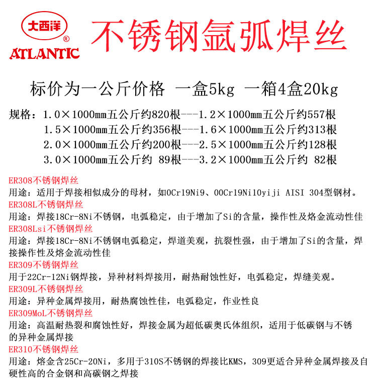 大西洋不锈钢氩弧焊丝 CHG304/ER304/CHG308/ER308实心焊丝
