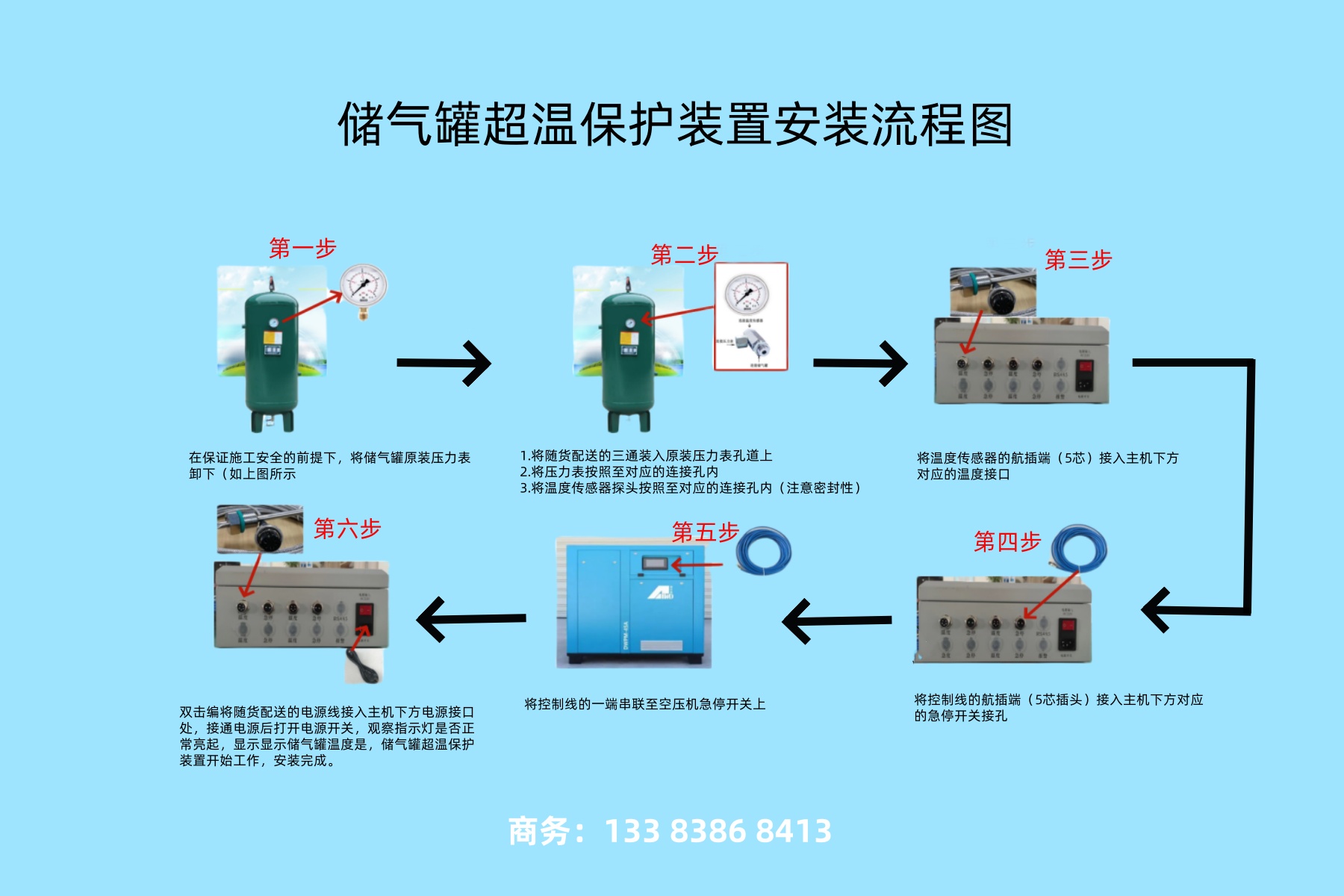 ?这款保护装置含有4路温度/压力测量输入接口和4个空压机急停控制接口,每个储气罐的温度和压力测量接口,集成到一个5芯的航空插头中,每台空压机单独一个急停控制接口。如只监测一台储气罐数据,只接一组即可,其他接口空余。